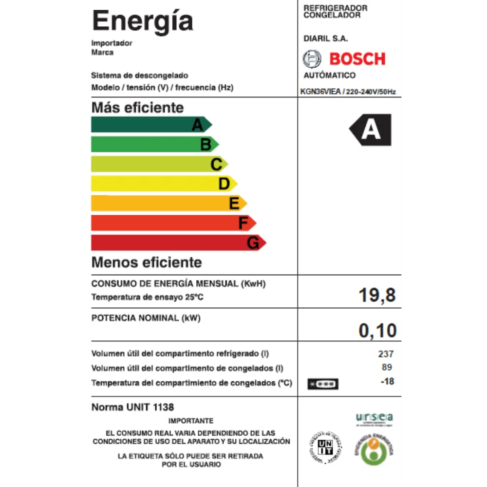 •Capacidad NETA – 326 Lts.