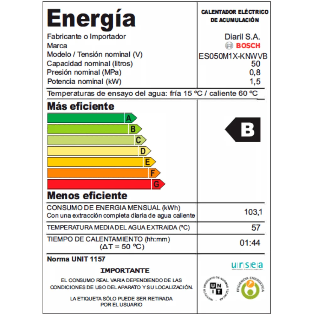 • Clase de eficiencia energética B